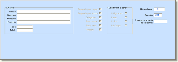 | • | Ultimo albarán.- Se utiliza en delegaciones para numerar el albarán con arreglo a este contador. |